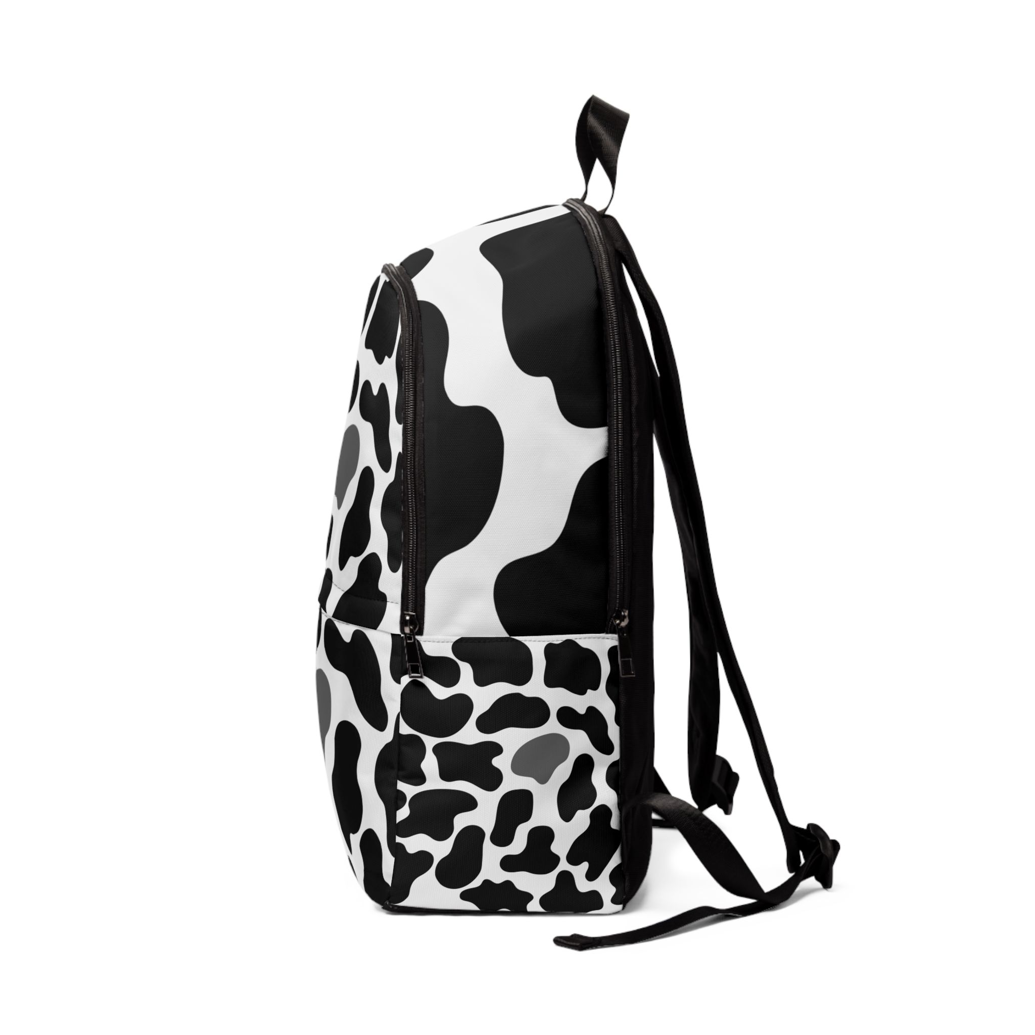 This lightweight fabric backpack brings bold, graphic style to everyday carry. The black-and-white cow-spot print feels modern and playful — a subtle statement that upgrades your daily routine. Designed for comfort and durability, this fabric backpack works perfectly as a personal bag or a custom logo backpack for branding. The soft nylon canvas fabric is water-resistant and built for daily use, making it a reliable choice for anyone looking for a long-lasting fabric backpack.