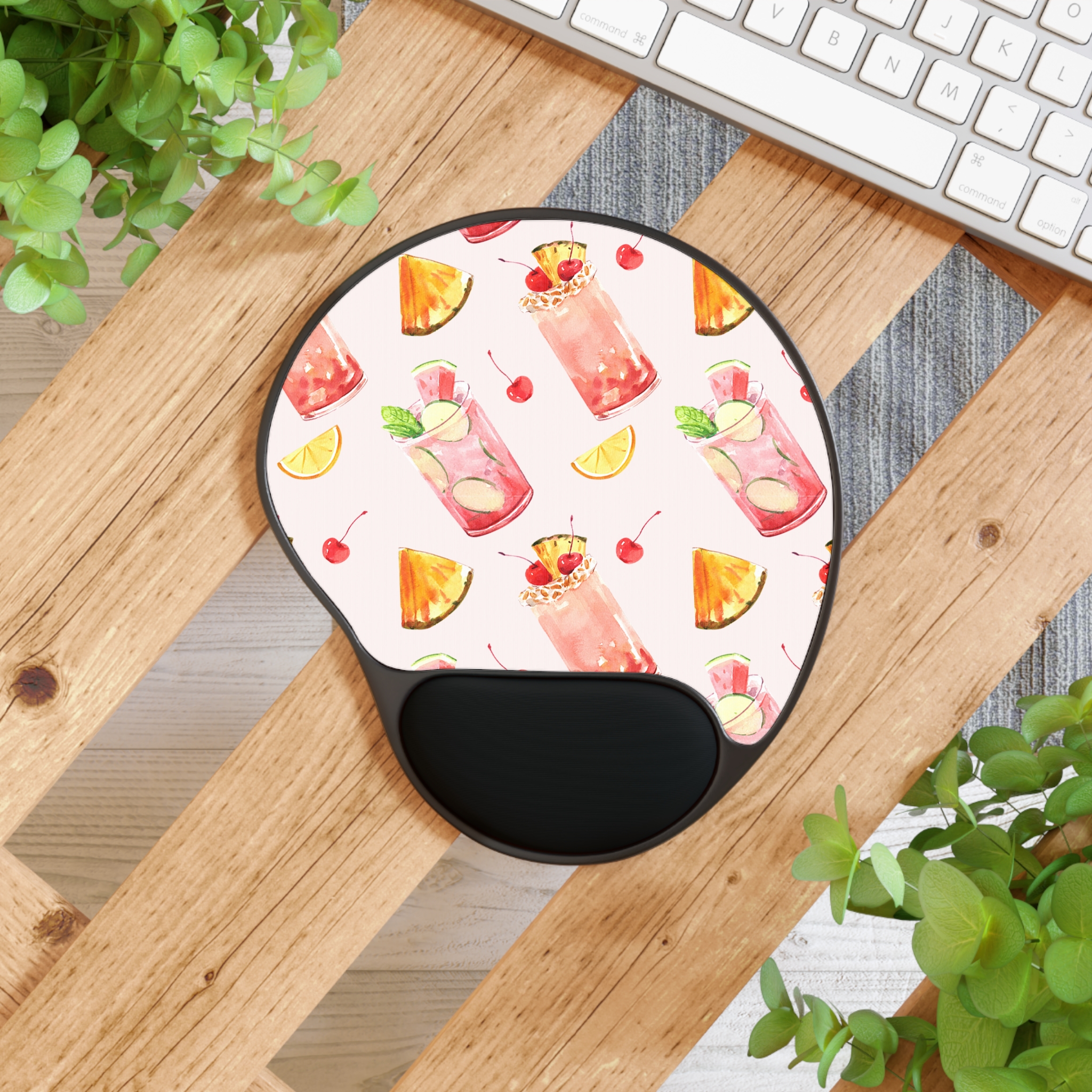 Bright, playful, and comfortable — this mouse pad brings a splash of summer refreshment to your desk. Soft watercolor illustrations of fizzy cocktails, lemon wedges, and cherries float across a light background, turning everyday clicks into a small moment of delight. The contoured Memory Foam™ wrist rest supports your hand during long creative sessions, while the removable neoprene insert makes cleaning quick and simple. Lightweight and compact, it slips into a home office, studio, or dorm desk without stealing space, and the semi-opaque black base keeps everything steady. If you spend hours designing, streaming, or tackling spreadsheets, this mouse pad adds both support and a cheerful, handcrafted vibe to your workspace.