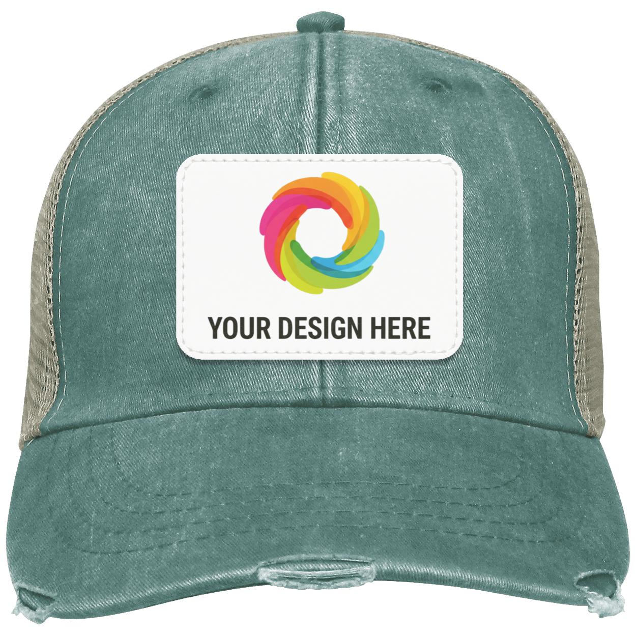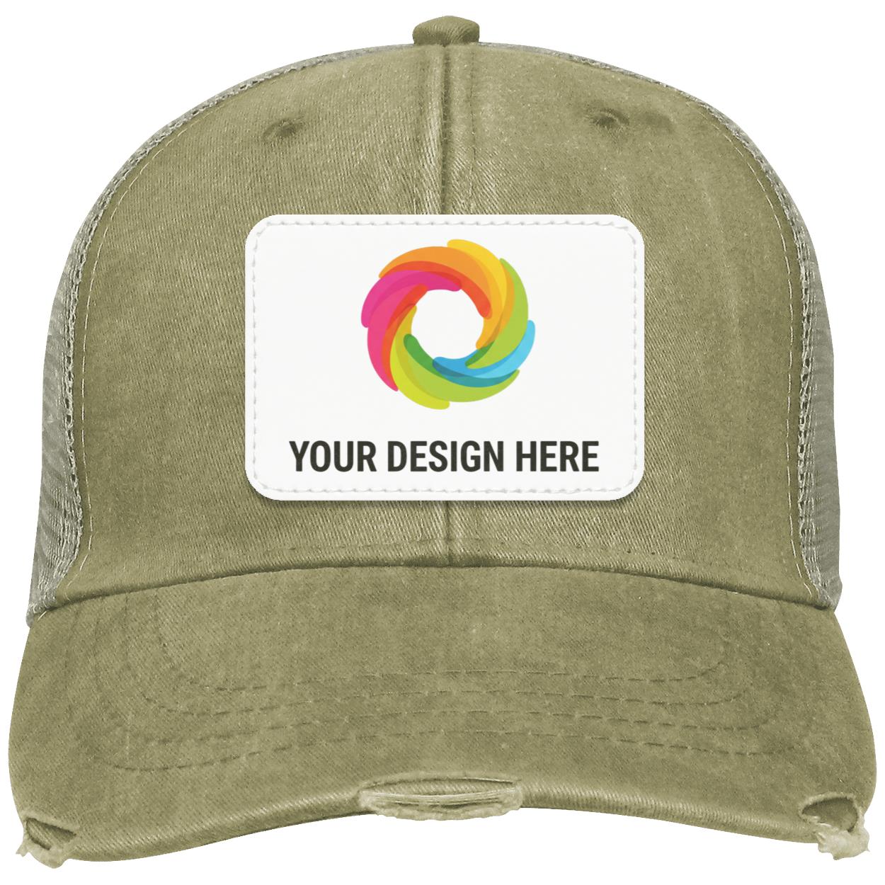 - Distressed torn visor, cotton twill sweatband; four-row stitching on bill