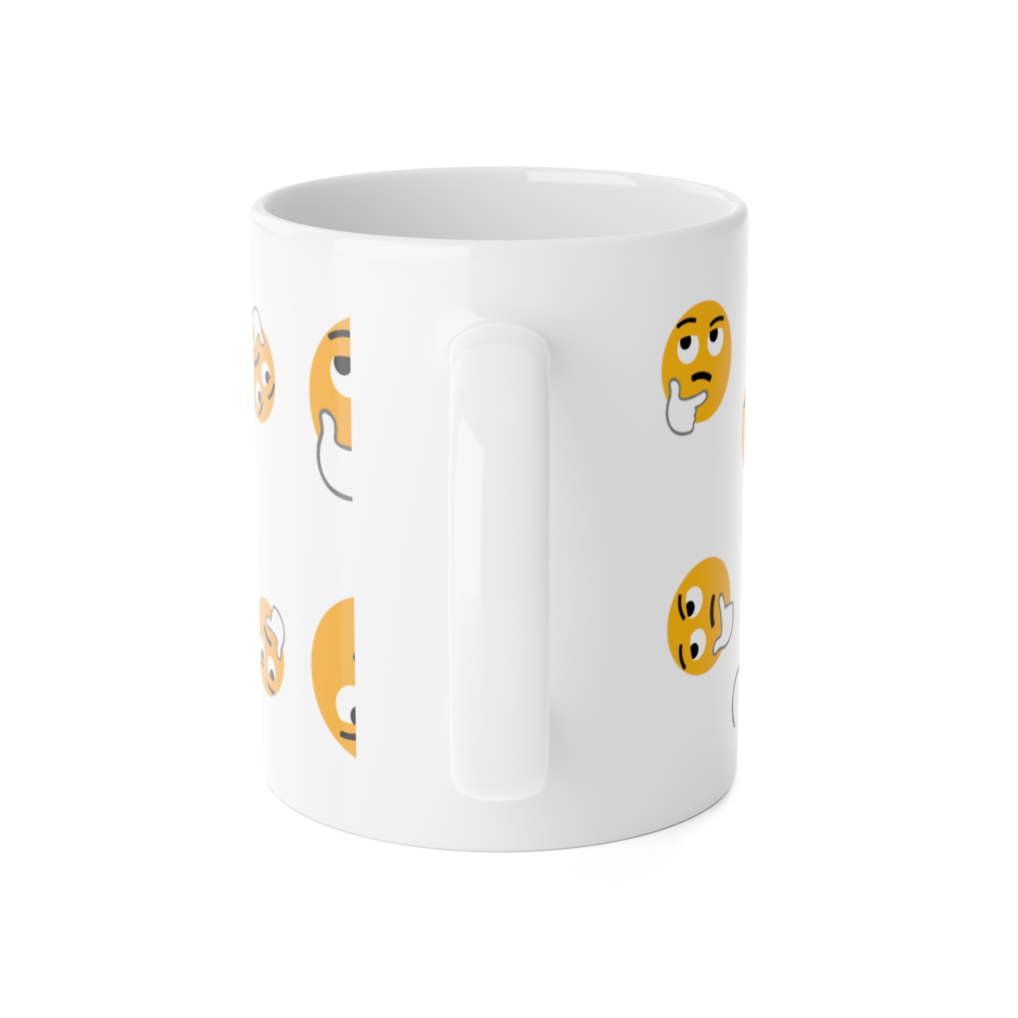 This glossy white ceramic 11 oz mug carries a playful thinking-emoji pattern that nudges curiosity into your morning routine. Warm and tactile in the hand, its bright printed faces wrap around the cup so every sip comes with a small, familiar smile — or a puzzled smirk. It sits easily on a desk during brainstorming sessions, livens a kitchen shelf, and turns a quick coffee break into a tiny moment of levity. The sturdy C-handle and classic shape feel approachable and everyday-use ready, while the vibrant print keeps the mood light and a little clever.